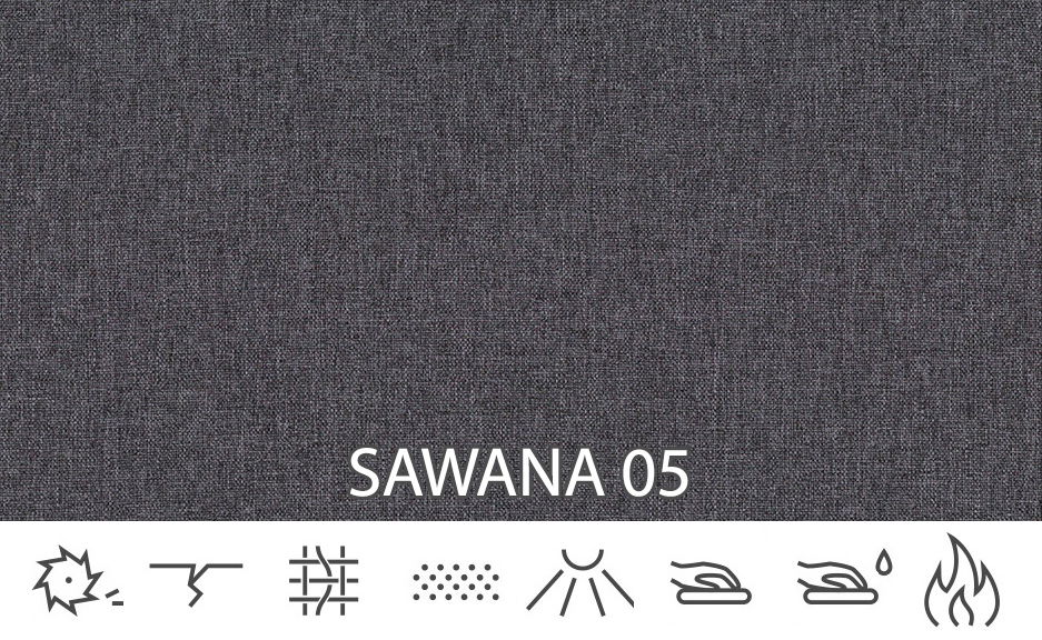 A Sawana fedőszövet puha, kellemes tapintású kötött anyag, amely könnyen karbantartható/tisztítható, puha és kellemes kötési textúrájával. Szintetikus szálakból készült, amelyek ellenállnak a fénynek - nem fakulnak ki. Hálózattal van megerősítve, amely szakadáskor növeli az erejét. Ne tegye ki az anyagot magas hőmérsékletnek – ne vasaljon, ne mosson nedvesen, és ne használjon fehérítőszert. Ápolása és tisztítása csak kárpitozott bútorok speciális eszközeivel.