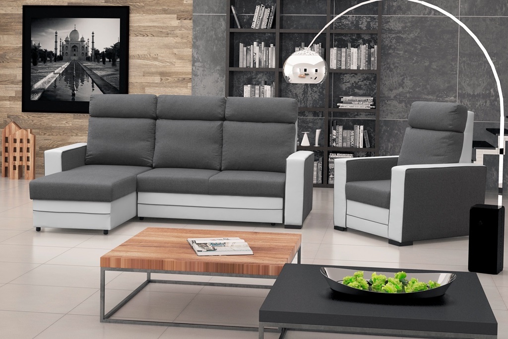 Sarokkanapé Maurita (sötétszürke + fehér) (B)