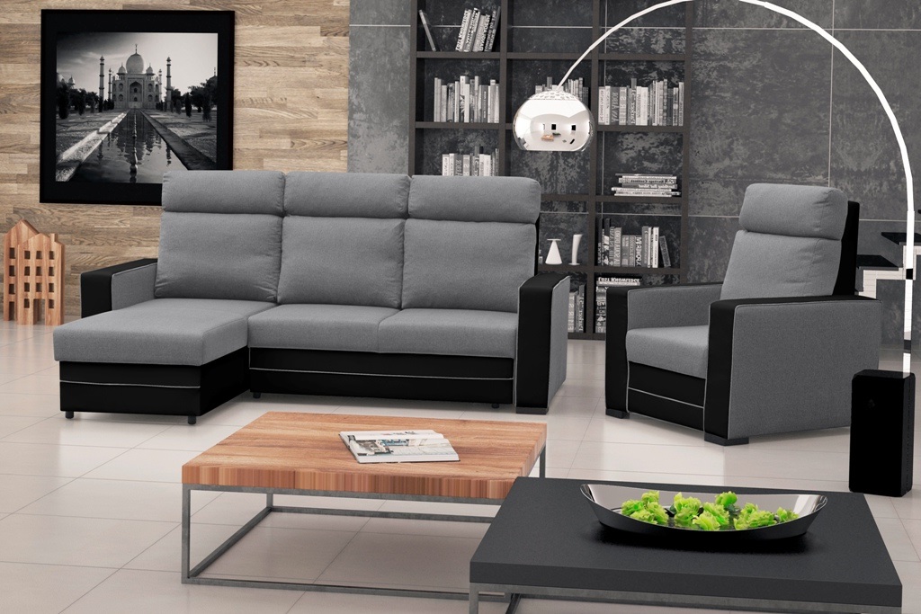 Sarokkanapé Maurita (világosszürke + fekete) (B)