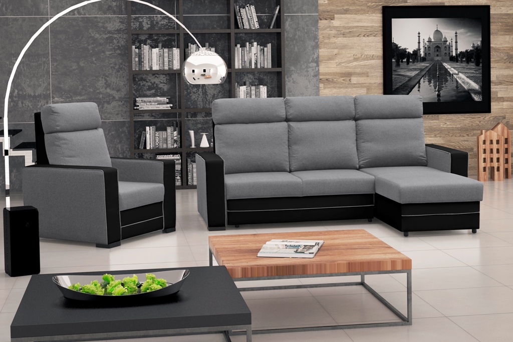 Sarokkanapé Maurita (világosszürke + fekete) (J)