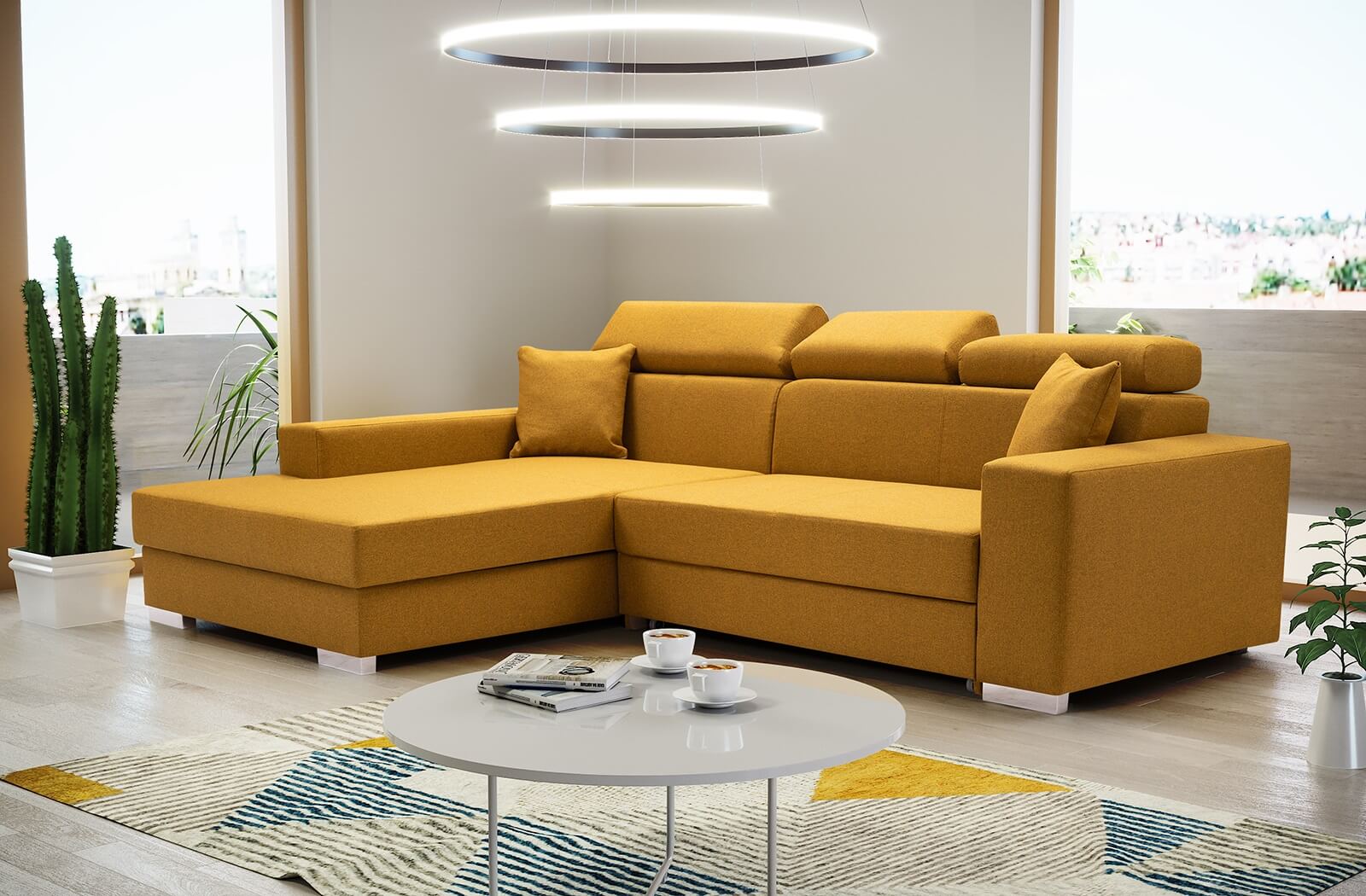 Kényelmes, nagy és tágas Mayola kanapé állítható fejtámlával. Több színváltozatban kínáljuk. A kanapéban sok tárolóhely található, és a kialakítása helyet kínál az alkalmi alváshoz. Balos és jobbos változatban kapható.
