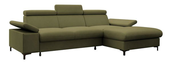 Szeretné kényelmesen relaxálni egy hosszú nap után? Próbálja ki sarkos ülőgarnitúránkat! Modern dizájn, vízálló szövet és kényelmes, olíva színű kárpitozás. Az ülőgarnitúra praktikus ágyfunkcióval és tárolóhellyel rendelkezik, valamint állítható fejtámlája van a maximális kényelemért. Tökéletes választás elegáns és modern belső terekhez. Termék részletei: Modern sarkos ülőgarnitúra karfákkal. Állítható fejtámla (43-58 cm). Poliuretán hab és hullámrugók. Egyszerű átkonvertálás, tárolóhely. Alvófelület: 200 × 130 cm. Salvador 08 szövet, olíva színben, kellemes tapintású, kopásálló, víz- és tűzálló.