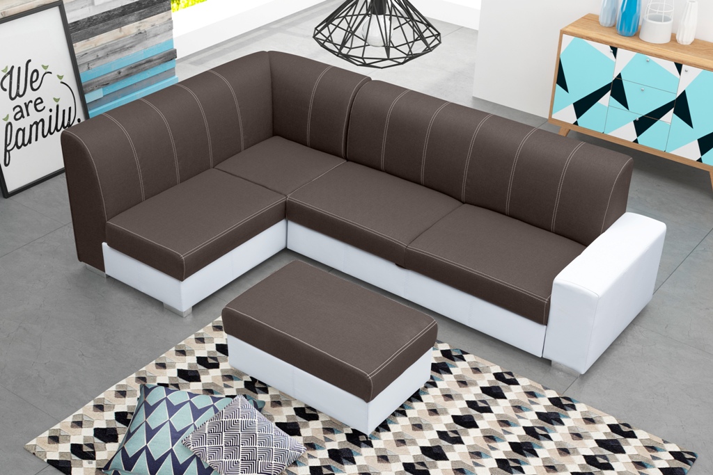 Sarokkanapé Monique (sötétbarna + fehér) (B)