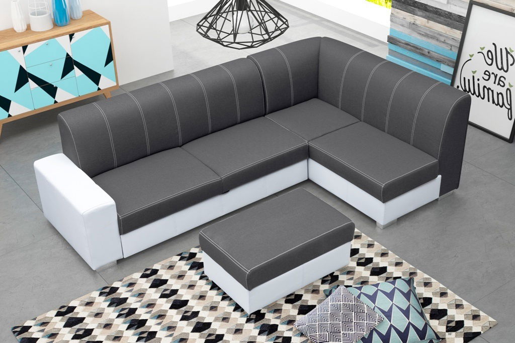 Sarokkanapé Monique (sötétszürke + fehér) (J)