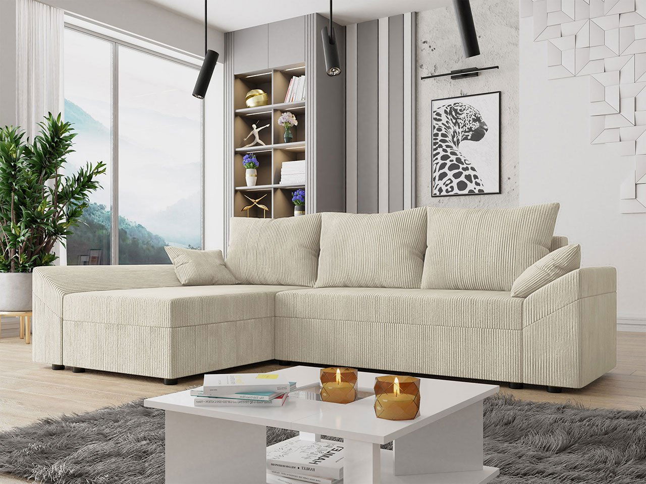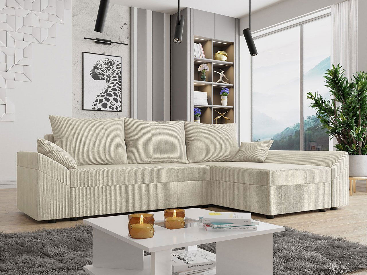 - Sarokkanapé Poltosa (krém) (tárolóhellyel)