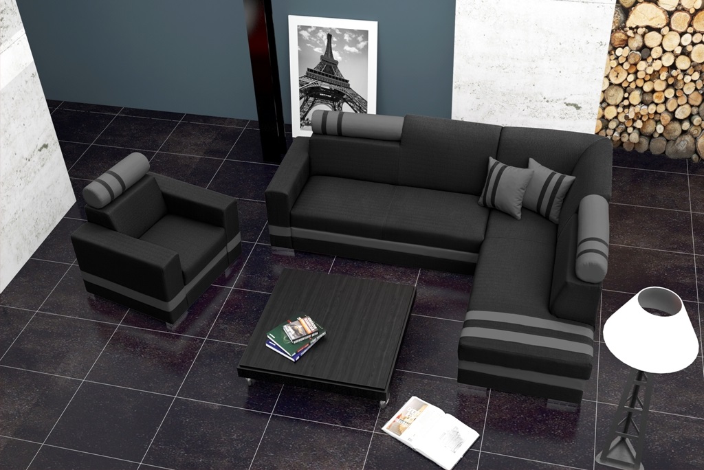 Sarokkanapé Reinaldo (fekete + szürke) (J)