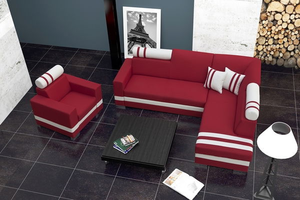 Sarokkanapé Reinaldo (piros + fehér) (J)