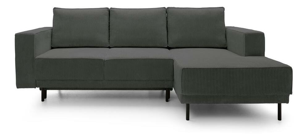 MutasdEgy stílusos nappaliról álmodozik, ahol kényelmesen pihenhet? A sarokkanapé sláger lesz A sarokkanapé egy modern formatervezésű forma, amely tökéletesen illeszkedik minden divatos enteriőrbe. Egyszerű, minimalista forma, vékony fekete lábak és puha párnák a háton – mindez rendkívül bájossá teszi, és ideális hely lesz a kikapcsolódásra egy fárasztó nap után. A sarokkanapé alvó funkcióval és könnyen kezelhető DL mechanikával van felszerelve, melynek köszönhetően a bútort gyorsan kényelmes ággyá varázsolhatja vendégei számára. tágas tárolóhelye is van, amelyben egy tartalék ágyneműt és egyéb textíliákat tárolhat a termék részletei: a bútorok L-alakúak, a sarokülés jobb oldali, dekoratív kordbársony szövet és szegély ad eleganciát az egésznek. , praktikus karfa. lehetővé teszi a karok kényelmes pihentetését, a bútorok Poso 60 szövettel vannak kárpitozva szürke színben A Poso kordbársony stílusú szövet. A vastag csíkokkal borított felület kellemes tapintású. Nagy kopásállóság, súrlódás és fényállóság jellemzi.
