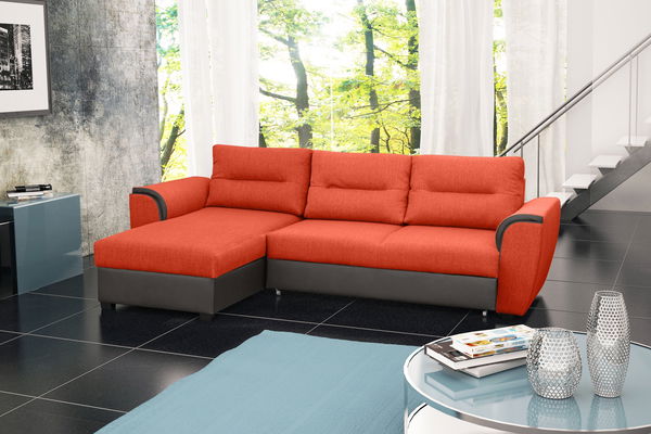 Modern sarokkanapé, amely minden nappalit ural. Alkalmas nappaliba vagy irodába. Nagy tárolóhelyet tartalmaz, és kialakítása helyet kínál az alkalmi alváshoz. Balos és jobbos változatban kapható.