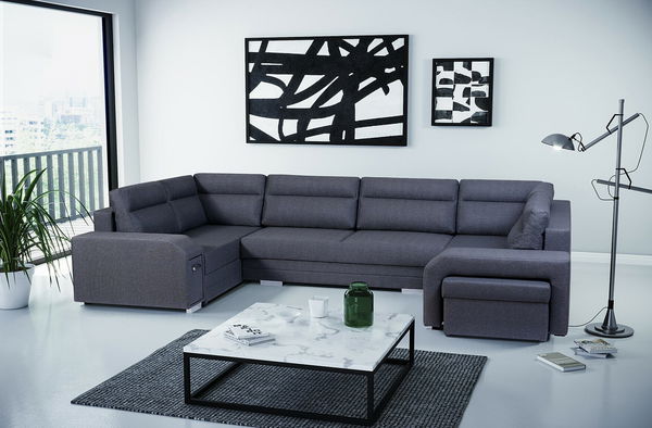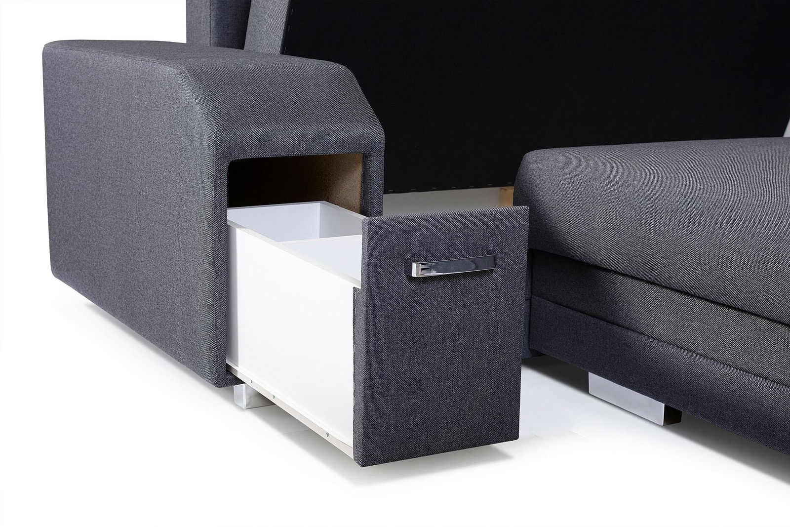 Az Albertus U alakú sarokkanapé két tárolóhellyel rendelkezik, kinyitható.
