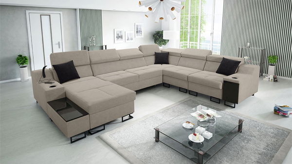 Sarokkanapé U Pesaruna VIII (bézs + fekete) (tárolóhellyel) (B)