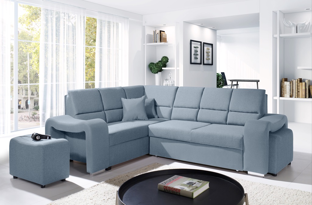Kényelmes, nagy és tágas Wan kanapé két zsámollyal. Több színváltozatban kínáljuk. A kanapénban sok tárolóhely található,és kialakítása helyet kínál az alkalmi alváshoz. Balos és jobbos változatban kapható.