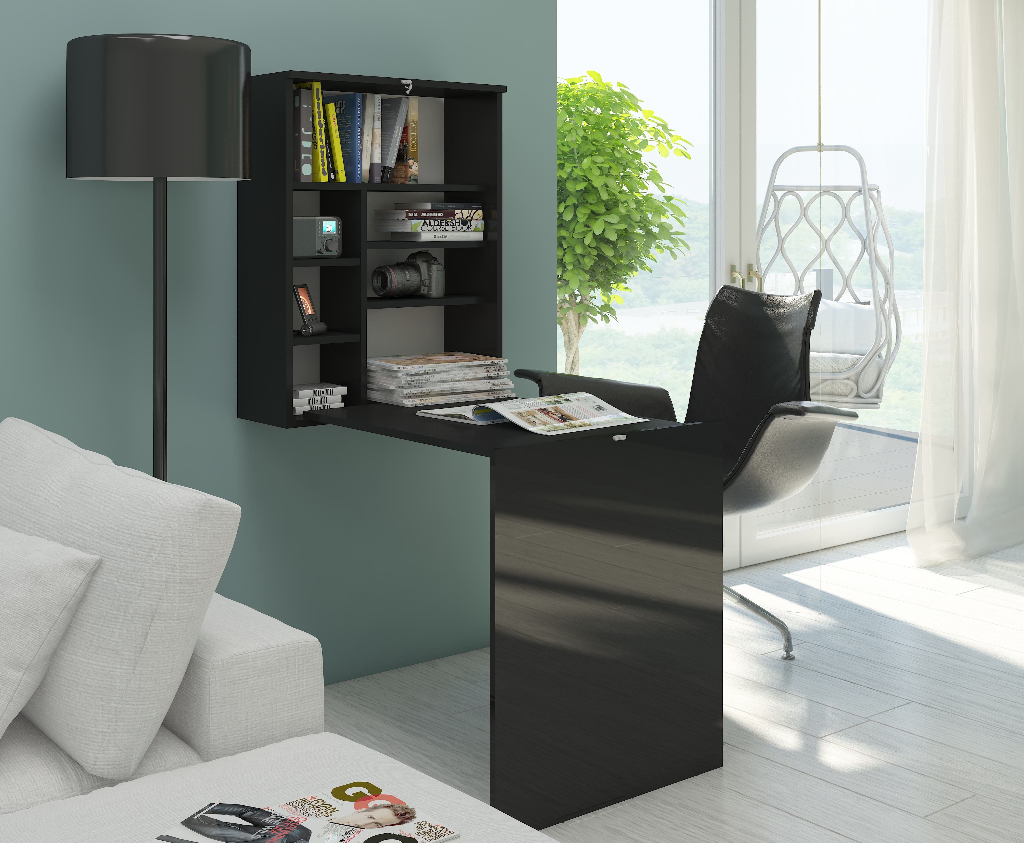Számítógépasztal Harby fekete + fényes fekete
