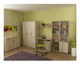 Egyszerű PC asztal egy szekrénnyel belső polcokkal a jobb oldalon és polccal fölötte.