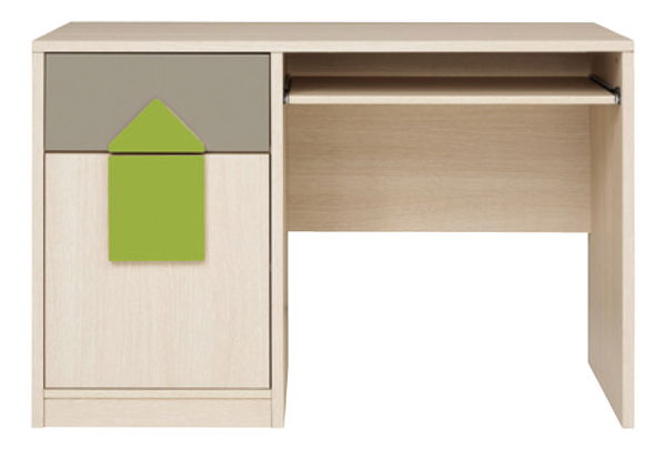 A BIU1D1S_8_12 számítógépasztal a Strzalka sorozatból egy szép és jó kivitelezésű modern asztal, amely tökéletesen beleillik az egész sorozatba. Az asztal tölgyfa színben kapható, szép zöld mintával és szürke színnel a fiókon. Az asztal egy fiókot, valamint az ajtó mögött egy vízsszintes polcot tartalmaz. Minőséges anyagokból készült.