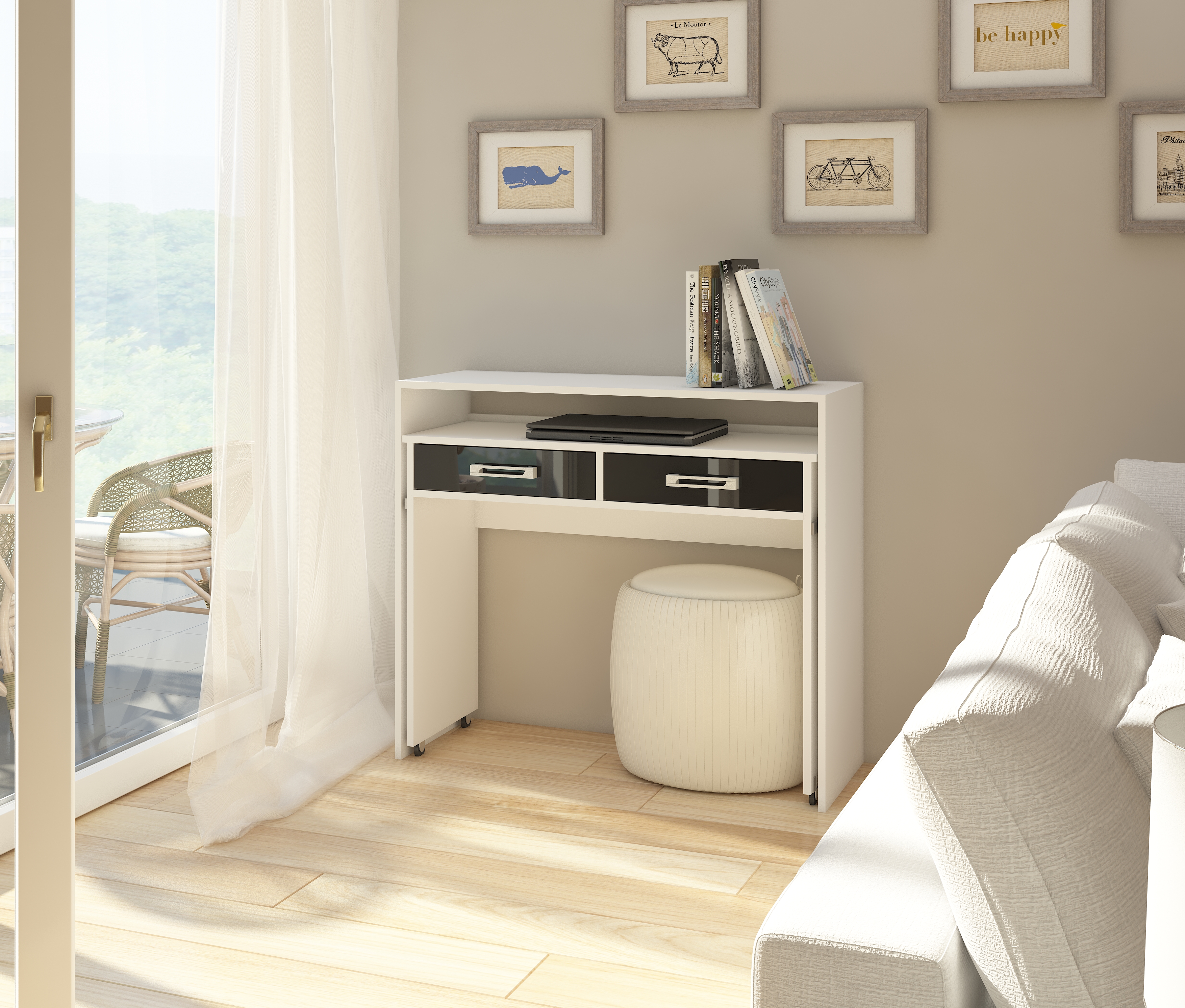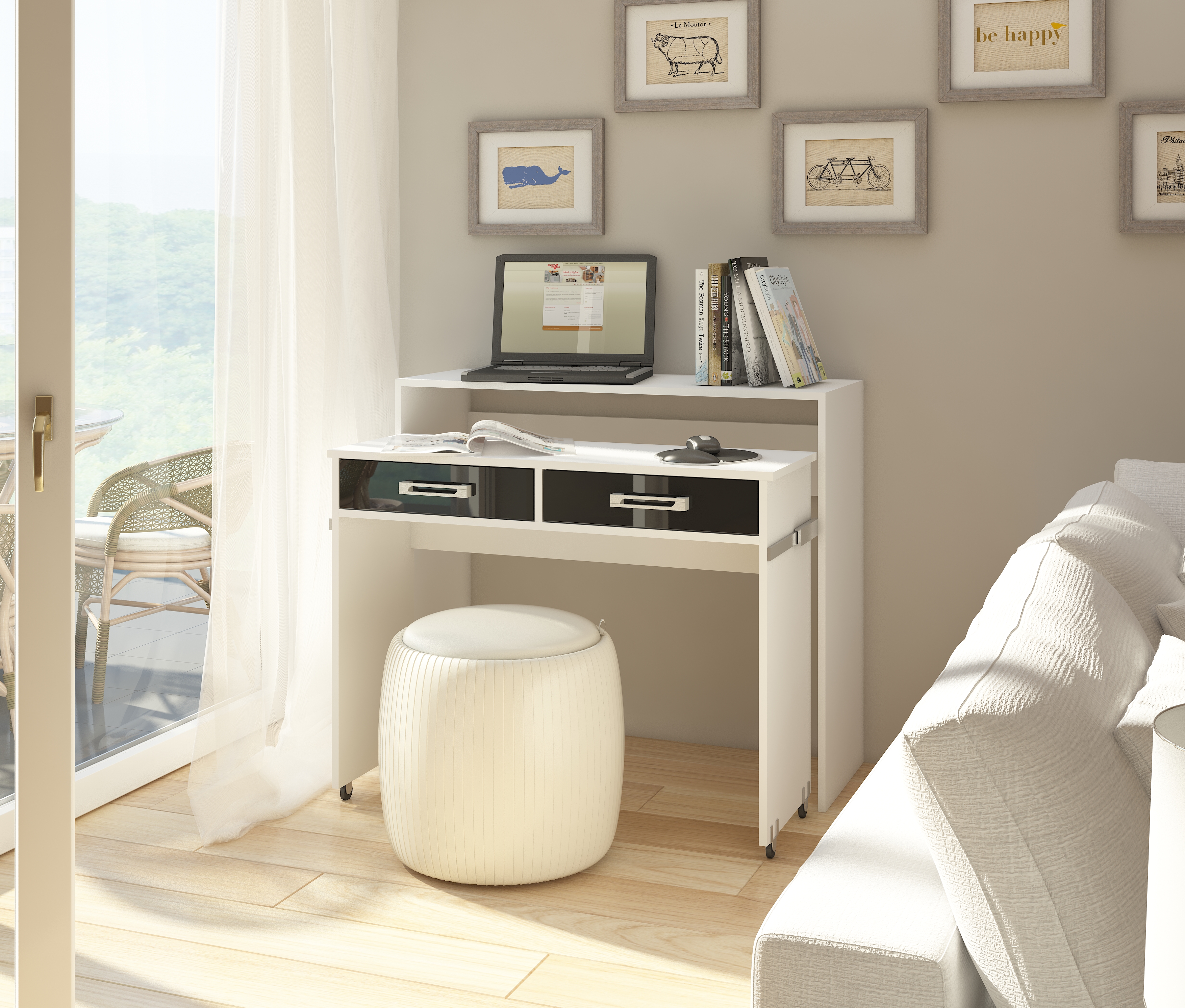 Számítógépasztal Zoom (fehér + fényes fekete)
