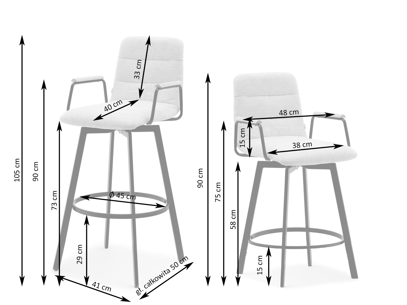 háttámla igen, karfák igen, 4 láb, forgó ülés, állítható magasság