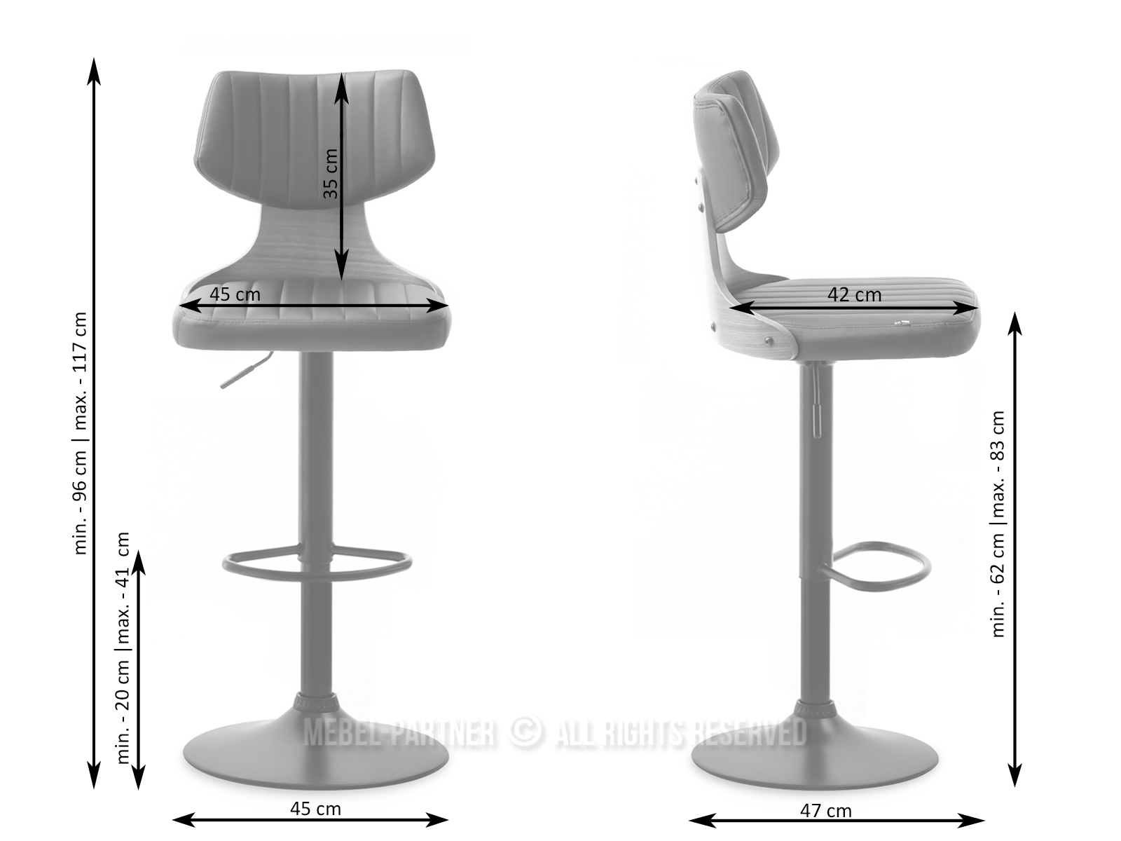 forgó ülés, támla igen, talapzat, karfák nem, állítható magasság