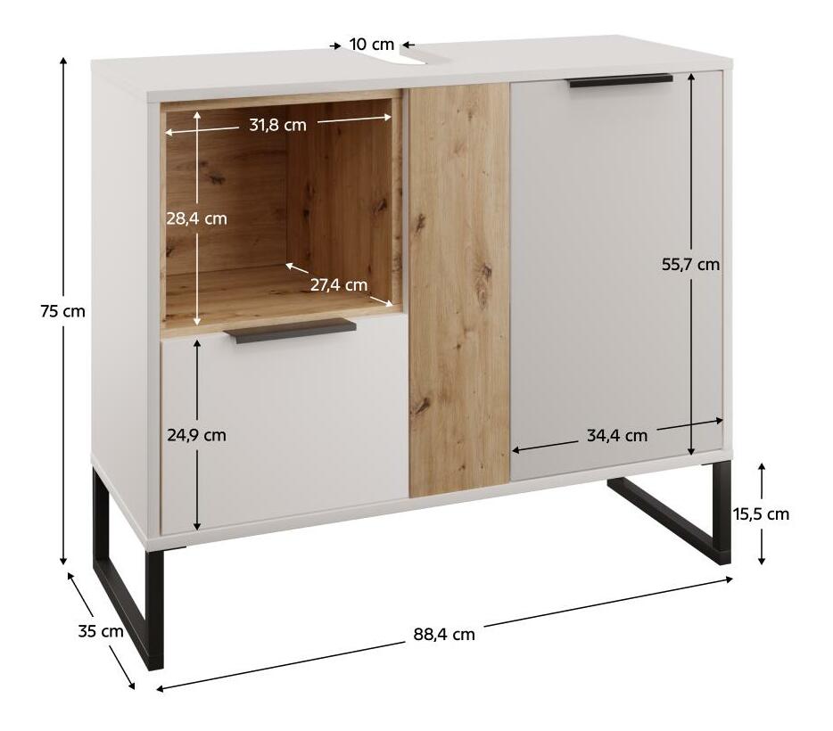 Szekrény a mosdó alá Cubin 03 (fehér + artisan tölgy)