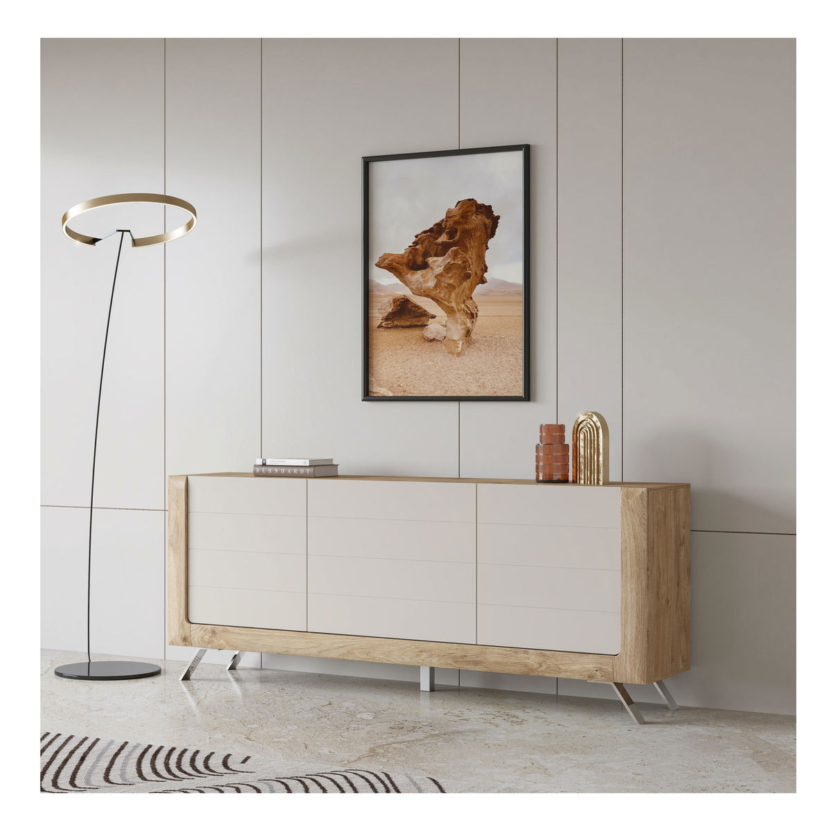 Ez a modern szekrény azok számára készült, akik funkcionális, stílusos tárolóhelyet keresnek. Kiváló minőségű, 15 mm vastag laminált forgácslapból készült, ABS élekkel ellátva, tartósságot és hosszú élettartamot biztosít. A masszív krómozott fém lábak stabilitást és kellemes megjelenést biztosítanak, amely illeszkedik a modern belső terekbe. A szekrény fogantyú nélküli Push to Open rendszerrel rendelkezik a könnyű nyitás érdekében, és csendes zárással van felszerelve.
