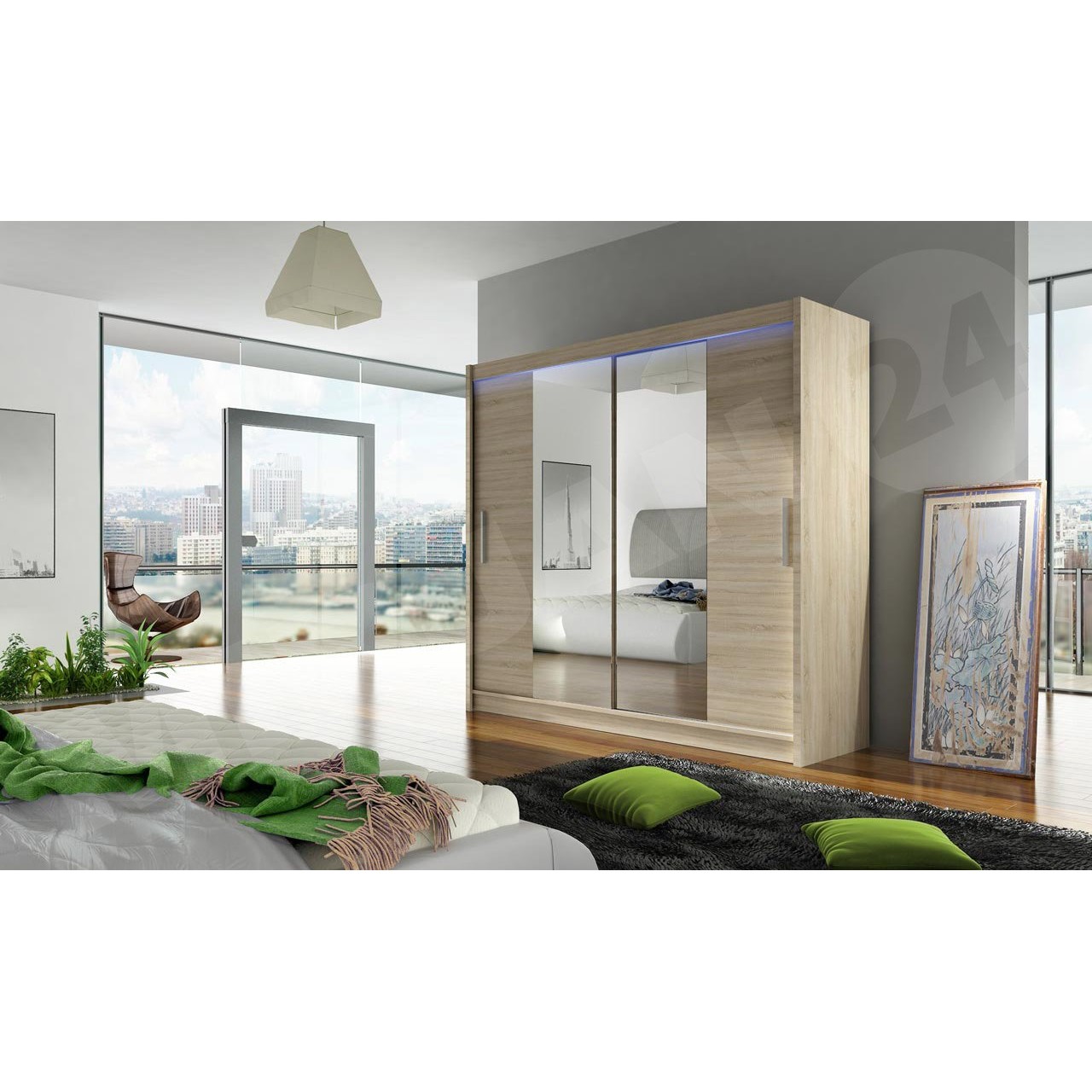 Tolóajtós szekrény Lena II (sonoma tölgy) (RGB LED világítás színes)