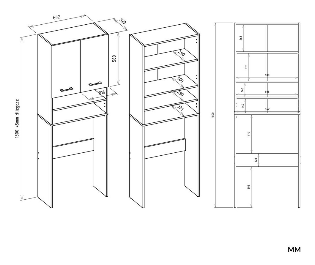 Szekrény mosógéphez Perdieron 1 (antracit + fehér)