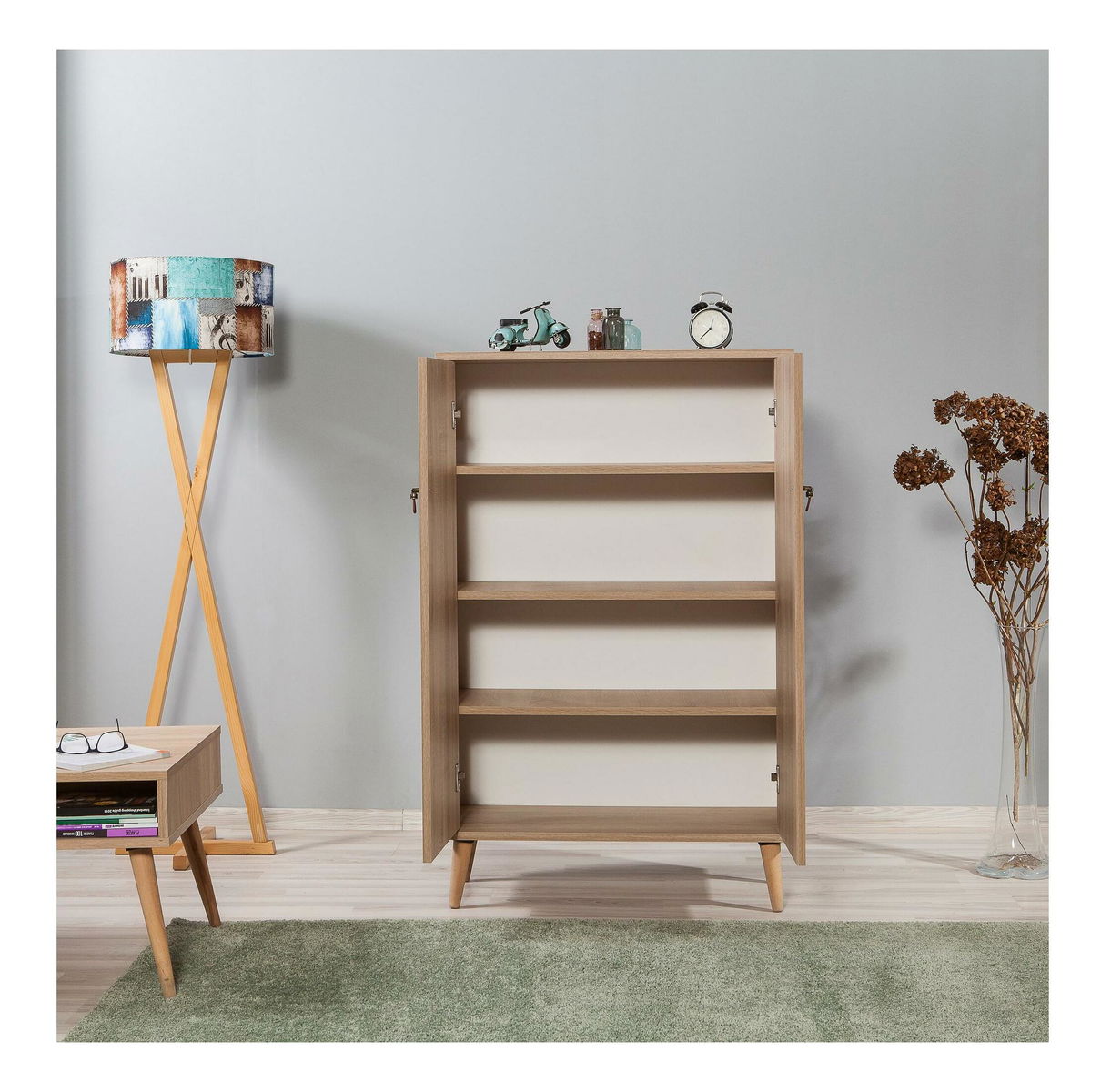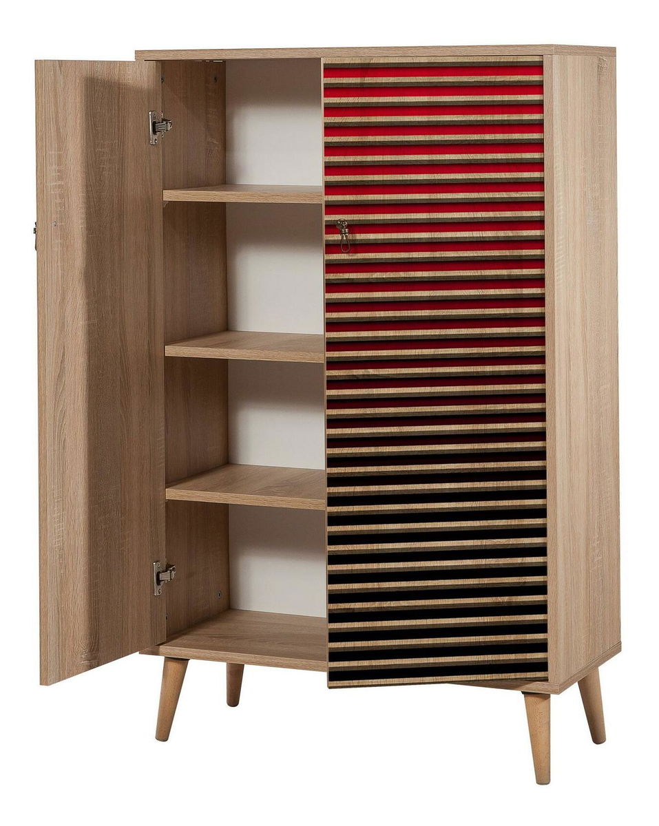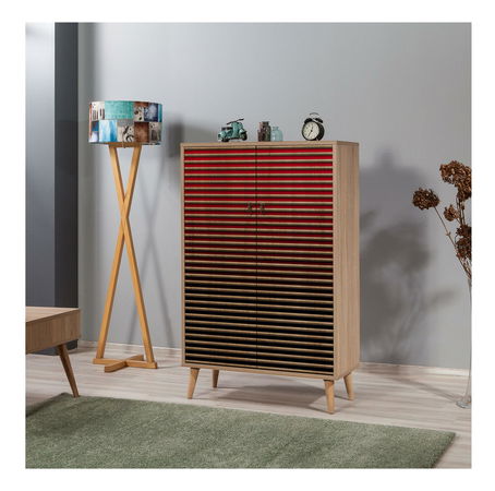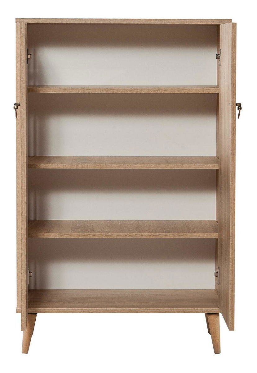 Vastagság: 18 mm. Gyertyán lábak. Fém fogantyúk, Szélesség: 80 cm. Magasság: 127 cm. Mélység: 36 cm. Polc magassága: 25,5 cm. Lábak magassága: 15 cm