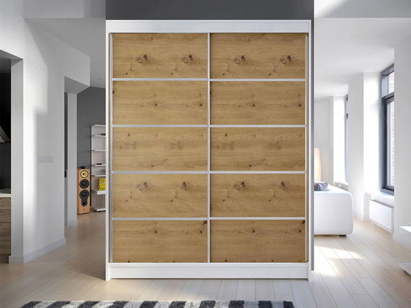 Szekrény tolóajtókkal Bianca IV (fehér + kézműves tölgy) (világítás nélkül)