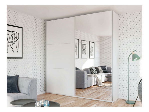 16 mm vastag laminált lap, HÄFELE bitonsgi tolóajtó, ABS bevonatú élek, elülső tükör
