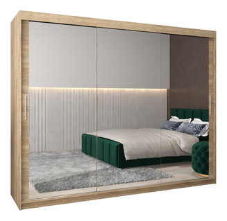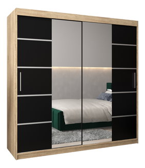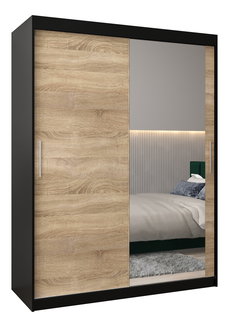 Ruhásszekrény 180 cm Toki 3 (matt fekete + sonoma tölgy)