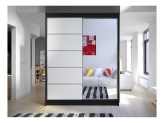 Ruhásszekrény Bianca III (fekete + fehér + tükör) (RGB LED világítás színes)