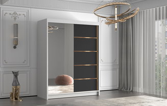 Tolóajtós szekrény Bastian IV (fehér + fekete) (RGB LED világítás színes)