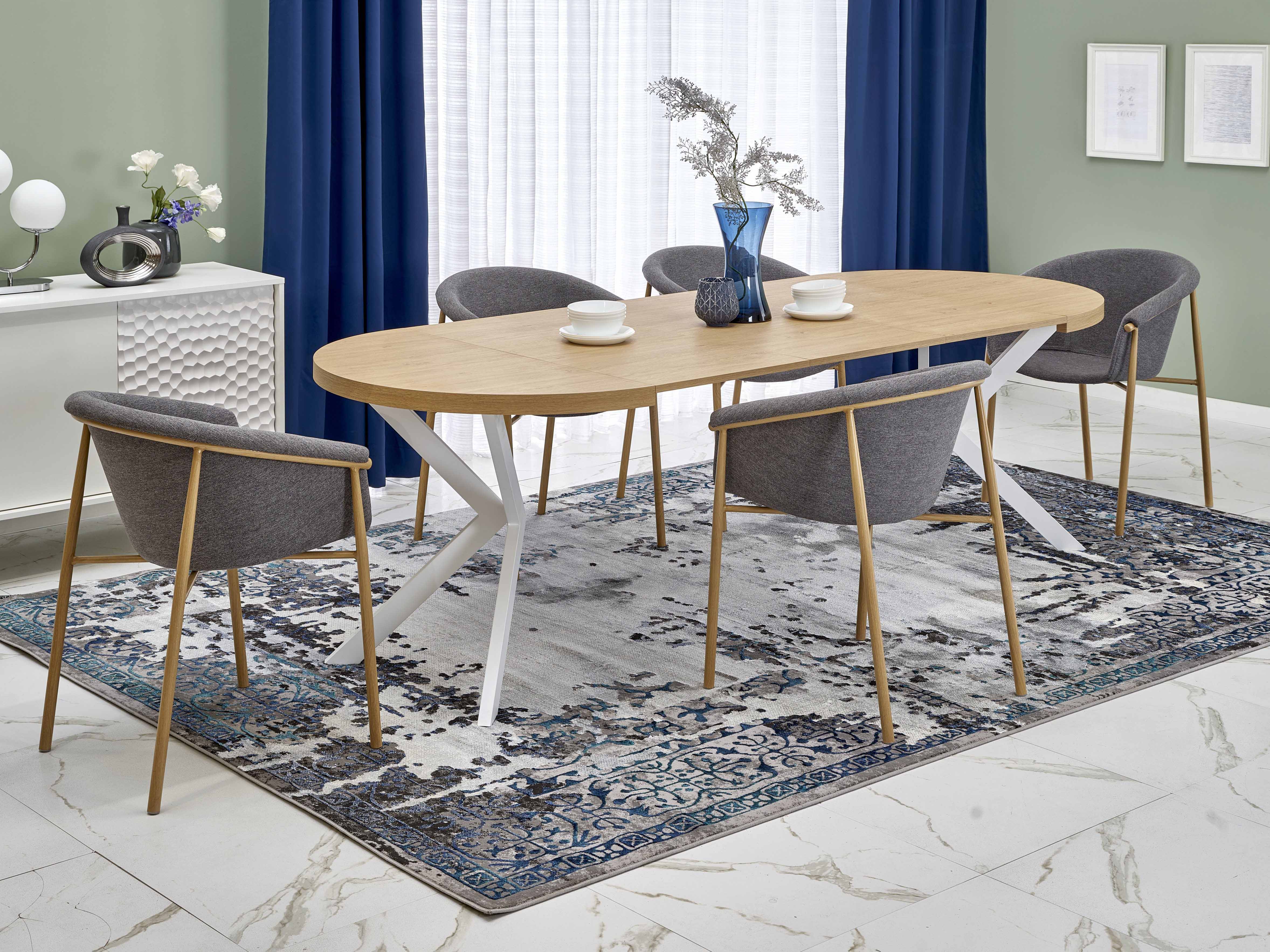 Széthúzható étkezőasztal 100-250 cm Pepeera (fehér + arany) (6 8 fő részére)