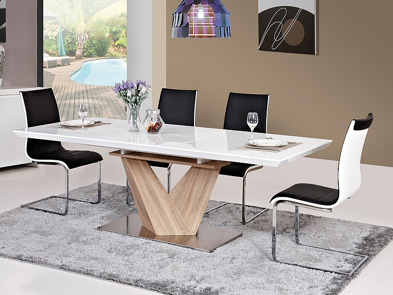 Széthúzható étkezőasztal 140-200 cm Allegra (fehér + tölgy) (8 és több fő részére)
