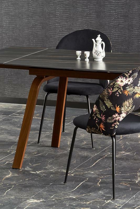 Széthúzható étkezőasztal 140-200 cm Leta (fekete márvány + dió) (6 8 fő részére)