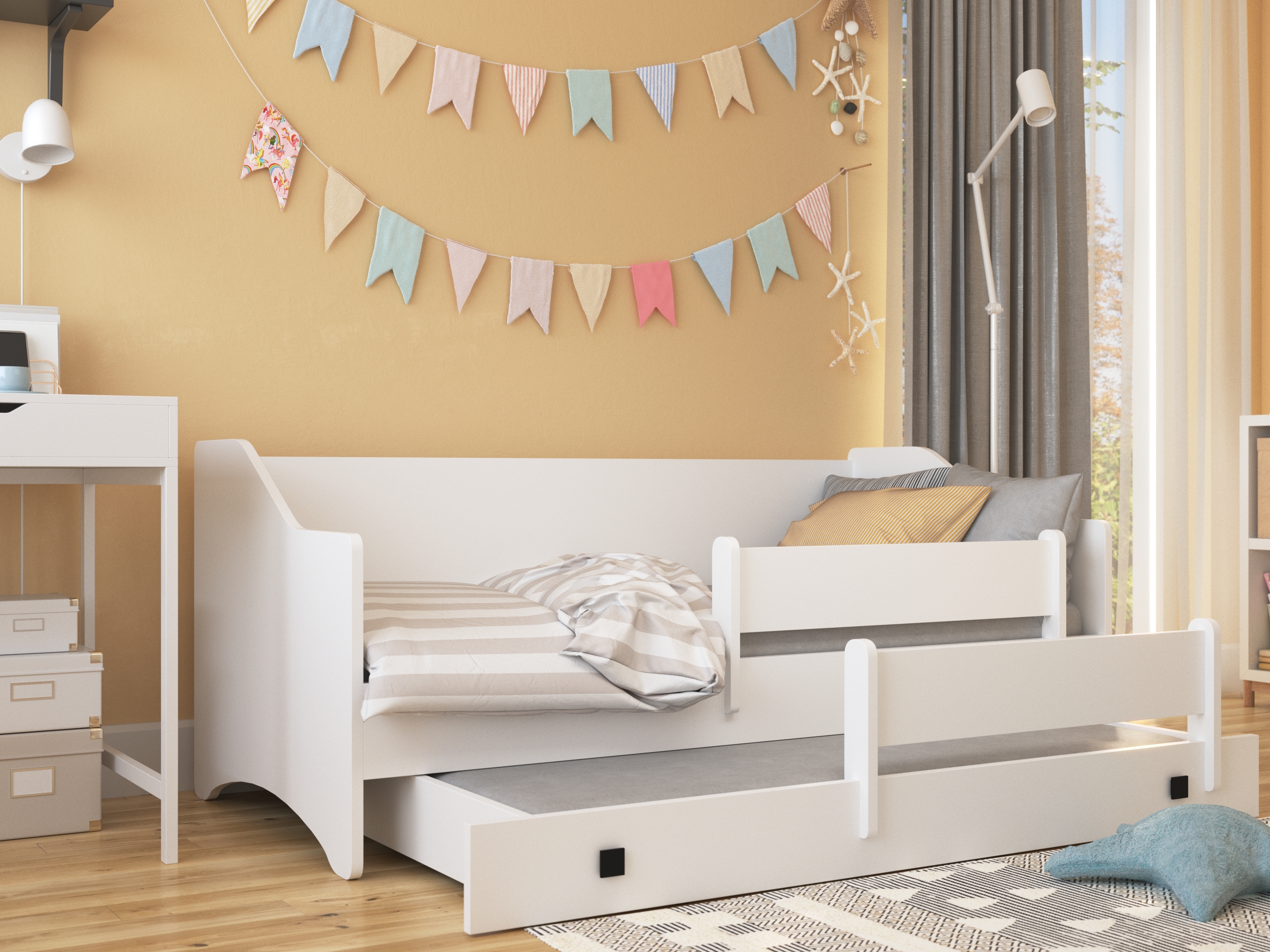 Széthúzható gyerekágy 160x80 cm Naty II (ágyráccsal és matraccal) (fehér + szürke)