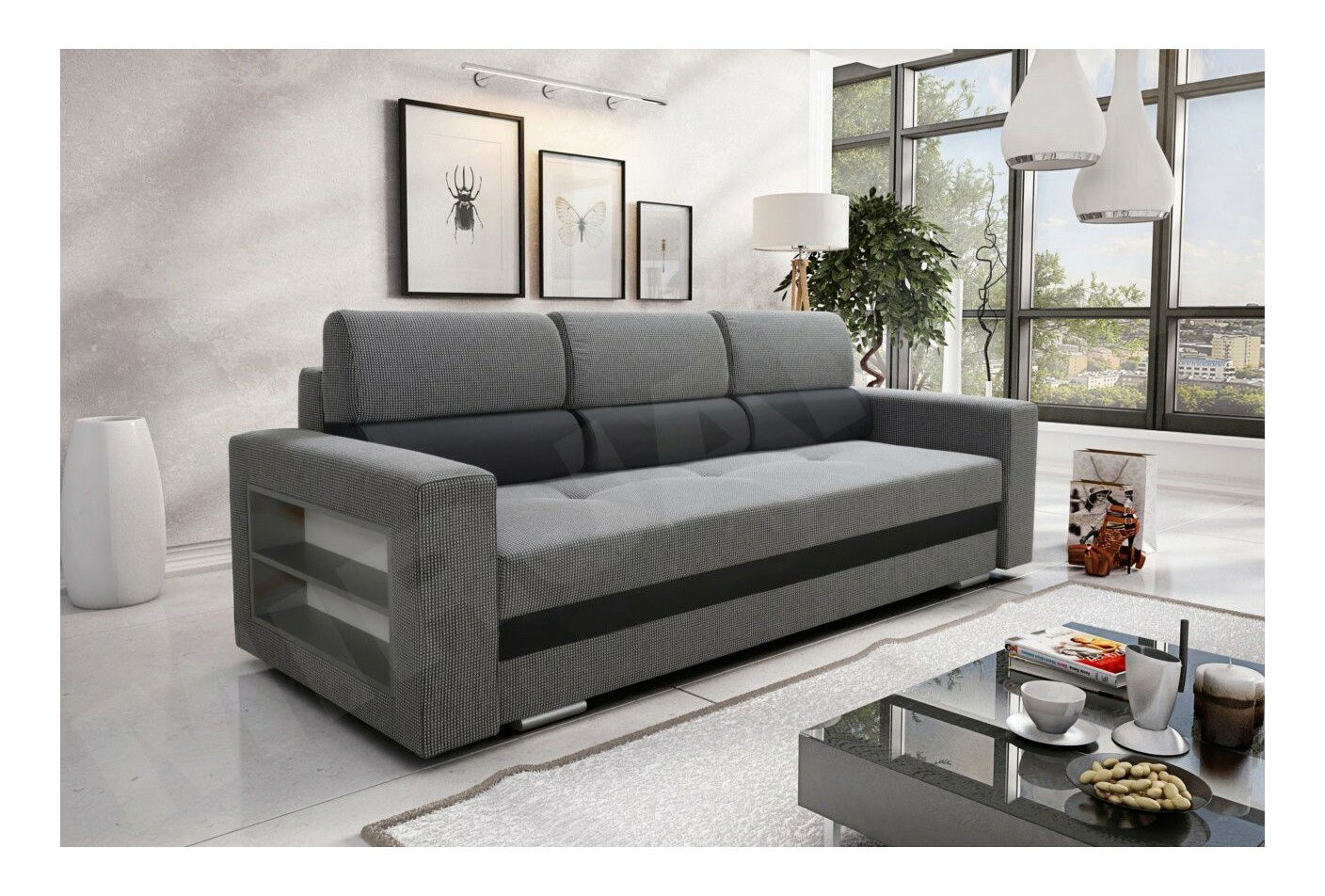 Széthúzható kanapé Carona (szürke + fekete) (tárolóhellyel)