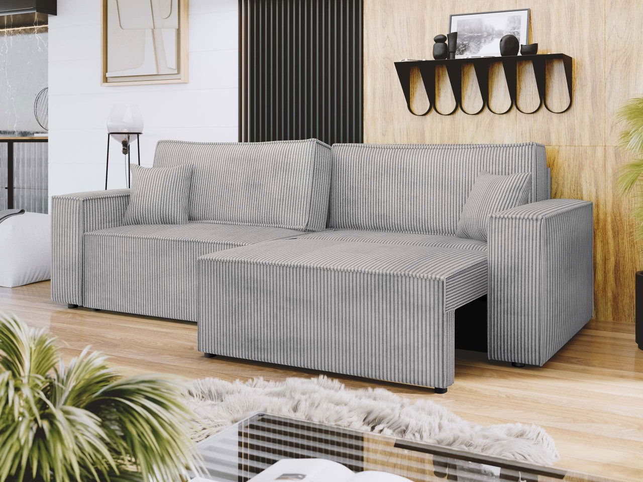 Széthúzható kanapé Stosono (szürke) (tárolóhellyel)