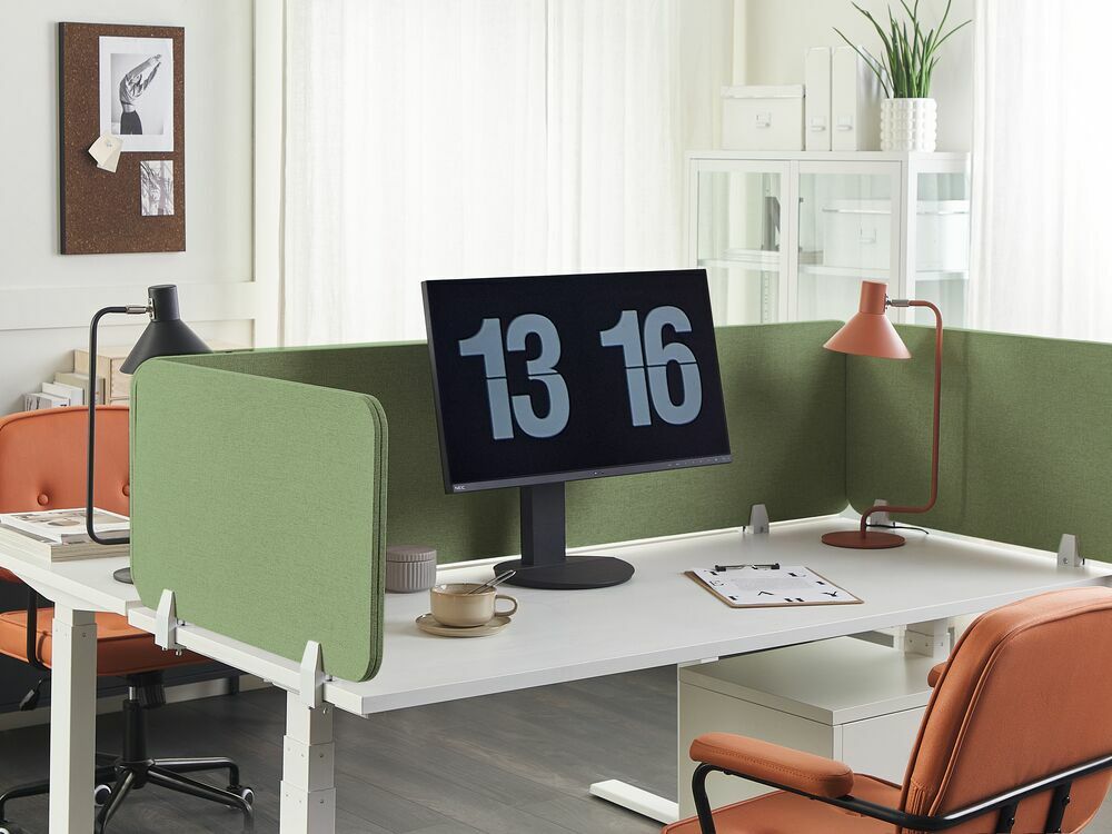 Meg akarja szabni munkaterületének határait, vagy nagyobb magánéletet szeretne biztosítani munka közben? Az asztali partíció mindkettőre képes. A mellékelt bilincsekkel egyszerűen az asztalhoz rögzíthető, hogy a kíváncsiskodó szemek ne nézzenek a képernyőre vagy a dokumentumokra. A tartós szintetikus tábla poliészter szövettel van kárpitozva, stílusos megjelenésű és csökkenti a háttérzajt, így zavartalanul koncentrálhat a munkájára.