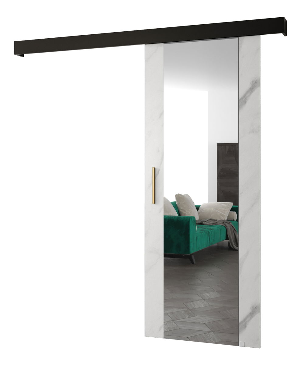 Tolóajtó 90 cm Sharlene II (fehér márvány + matt fekete + arany) (tükörrel)