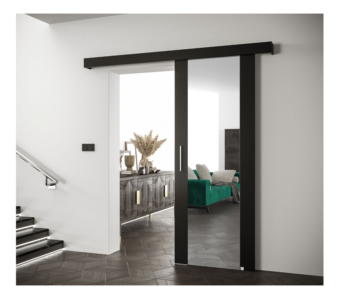 Tolóajtó 90 cm Sharlene II (matt fekete + matt fekete + ezüst) (tükörrel)