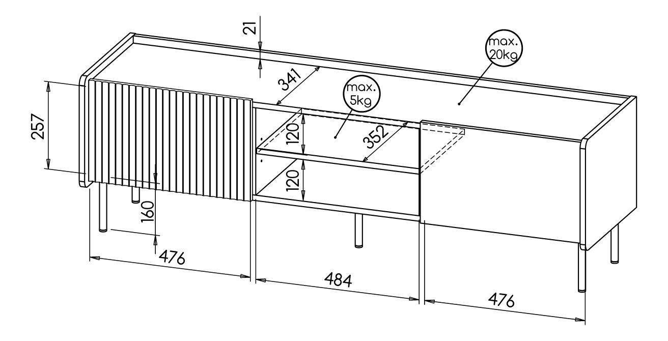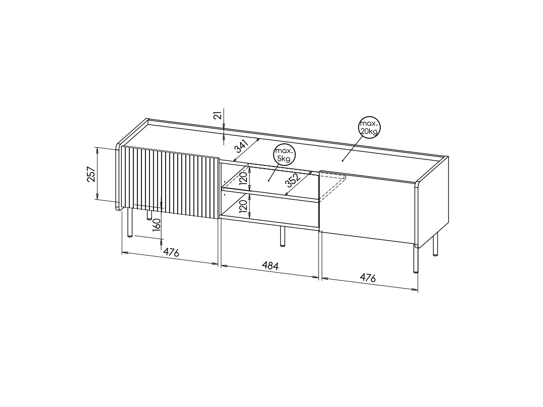 - TV asztal Phelan P7 (warmia dió + fekete)