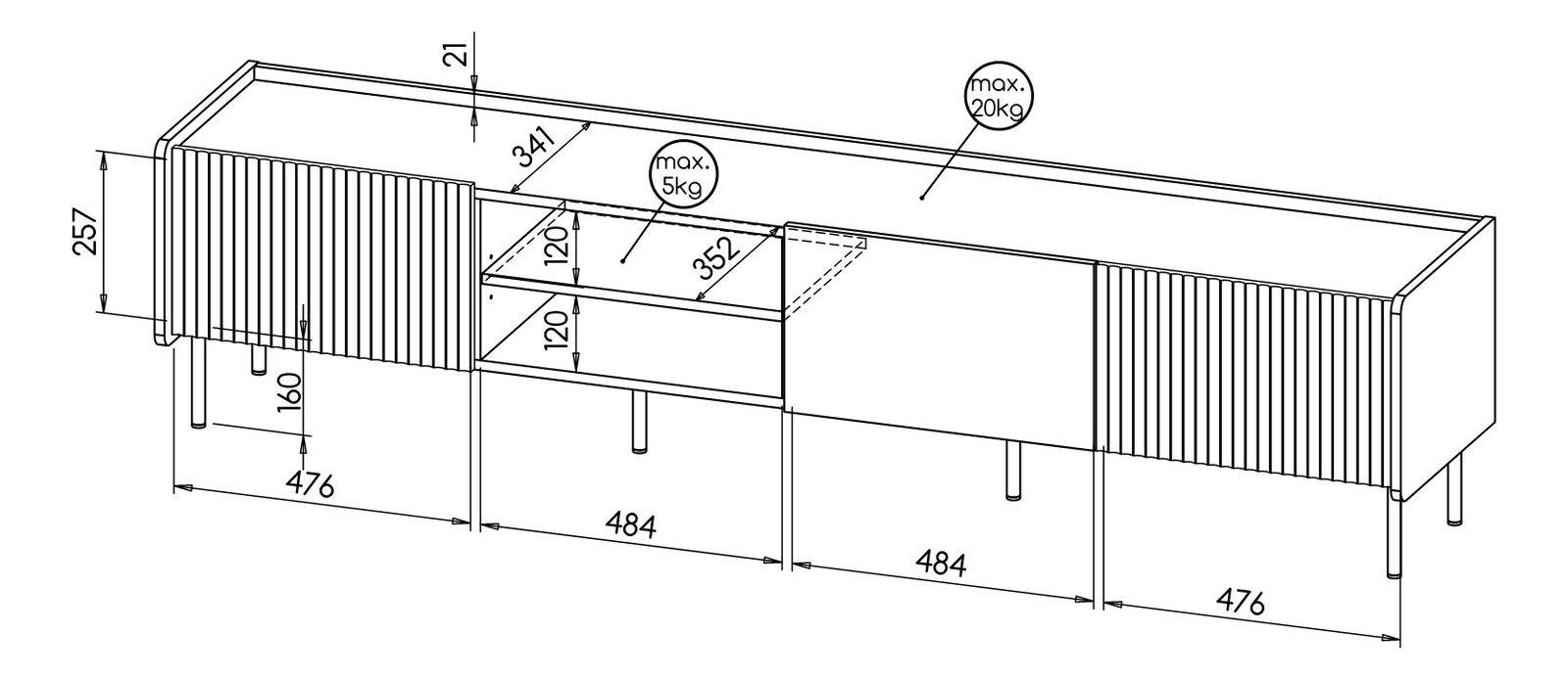 - TV asztal Phelan P8 (warmia dió + fekete)
