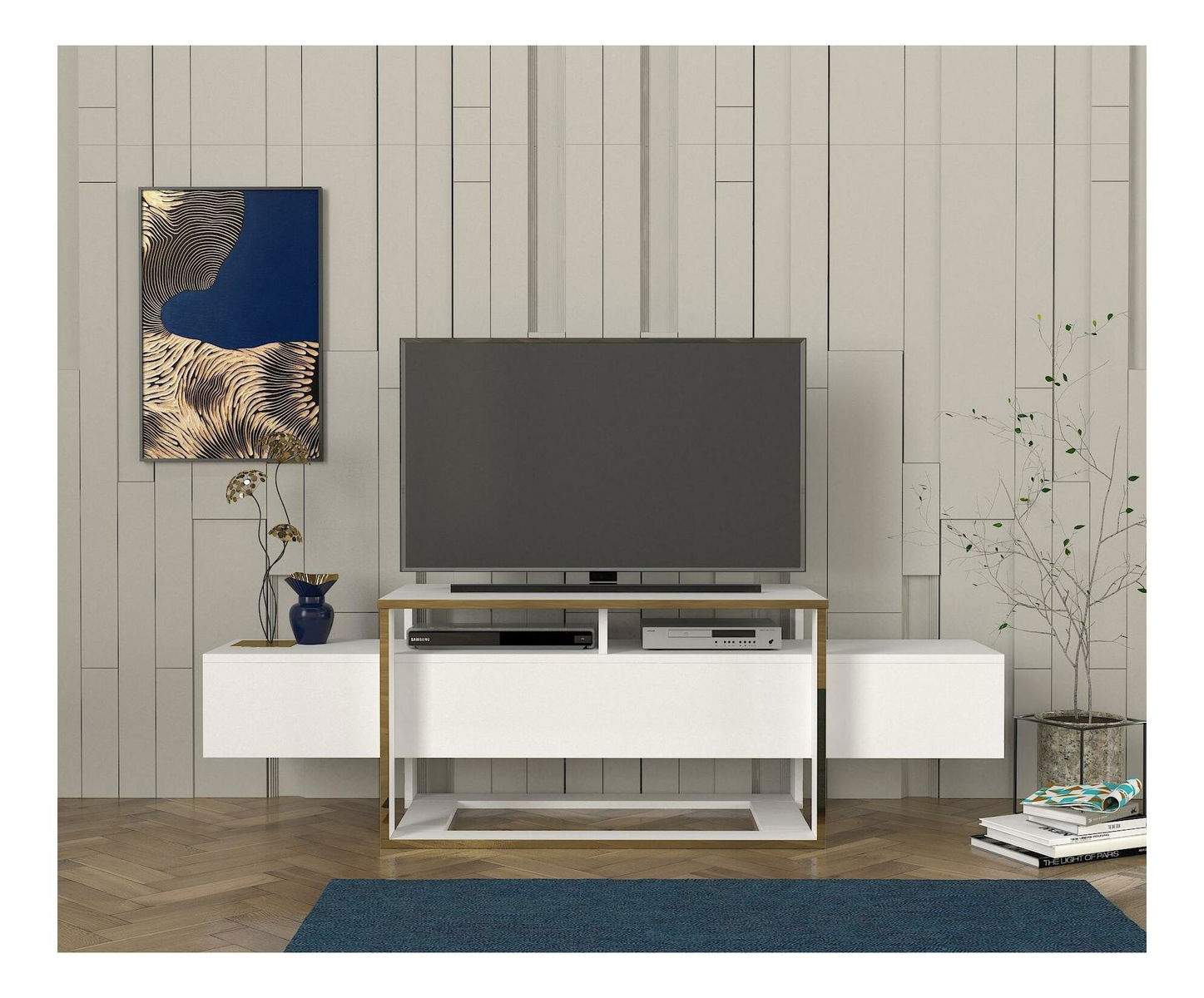 TV asztal/szekrény Biano (fehér + arany)