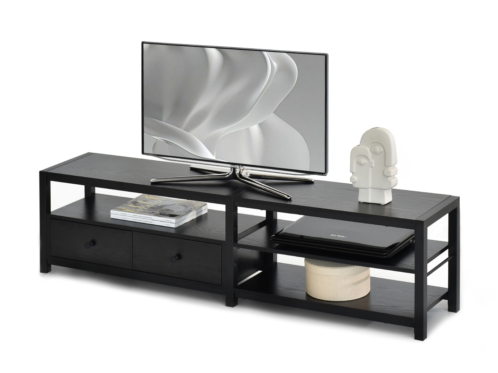 hosszúkás felső, nyitott polcokkal, pre TV, fiókokkal