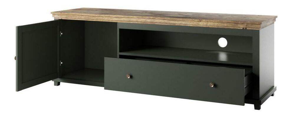 TV asztal/szekrény Elvina Typ 40 (sötétzöld + lefkas tölgy)