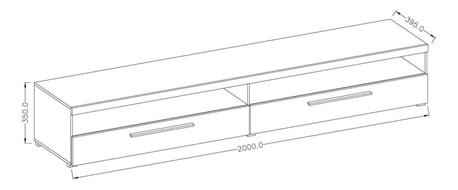 A TV-szekrény praktikus és stílusos kiegészítője a modern élettérnek. Mind a karosszéria, mind az előlap kiváló minőségű laminált lapból készült, ami garantálja a tartósságot és a hosszú élettartamot. A szekrény ezüstszínű műanyag fogantyúkkal és szürke lábakkal van felszerelve, amelyek kellemes megjelenést kölcsönöznek neki. A mechanikus dugattyú biztosítja az ajtó könnyű és biztonságos nyitását. Felár ellenében lehetőség van a dizájnt kiemelő, kellemes hangulatot teremtő világításra.