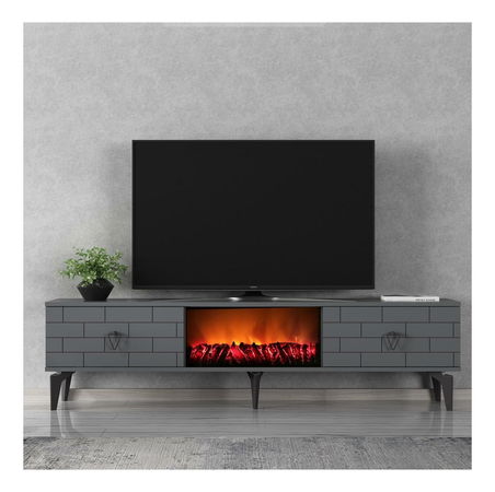TV asztal/szekrény kandallóval Bisena (antracit)
