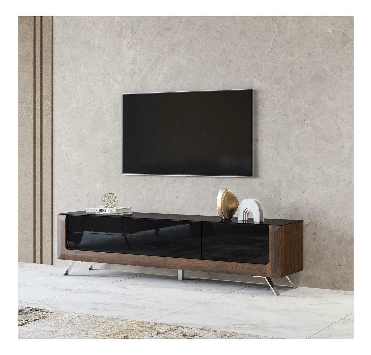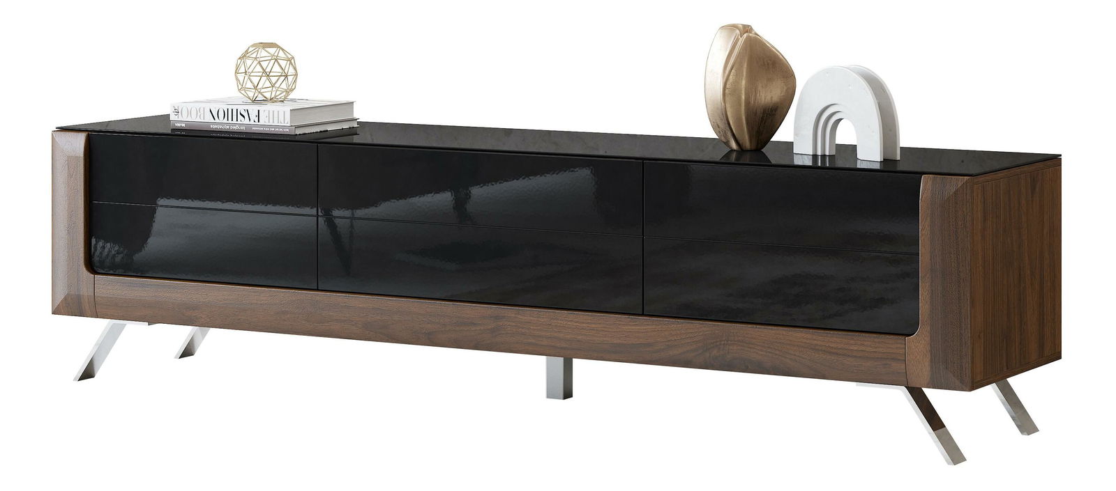 TV asztal/szekrény Kassie Typ 40 (fényes fekete + columbia dió)