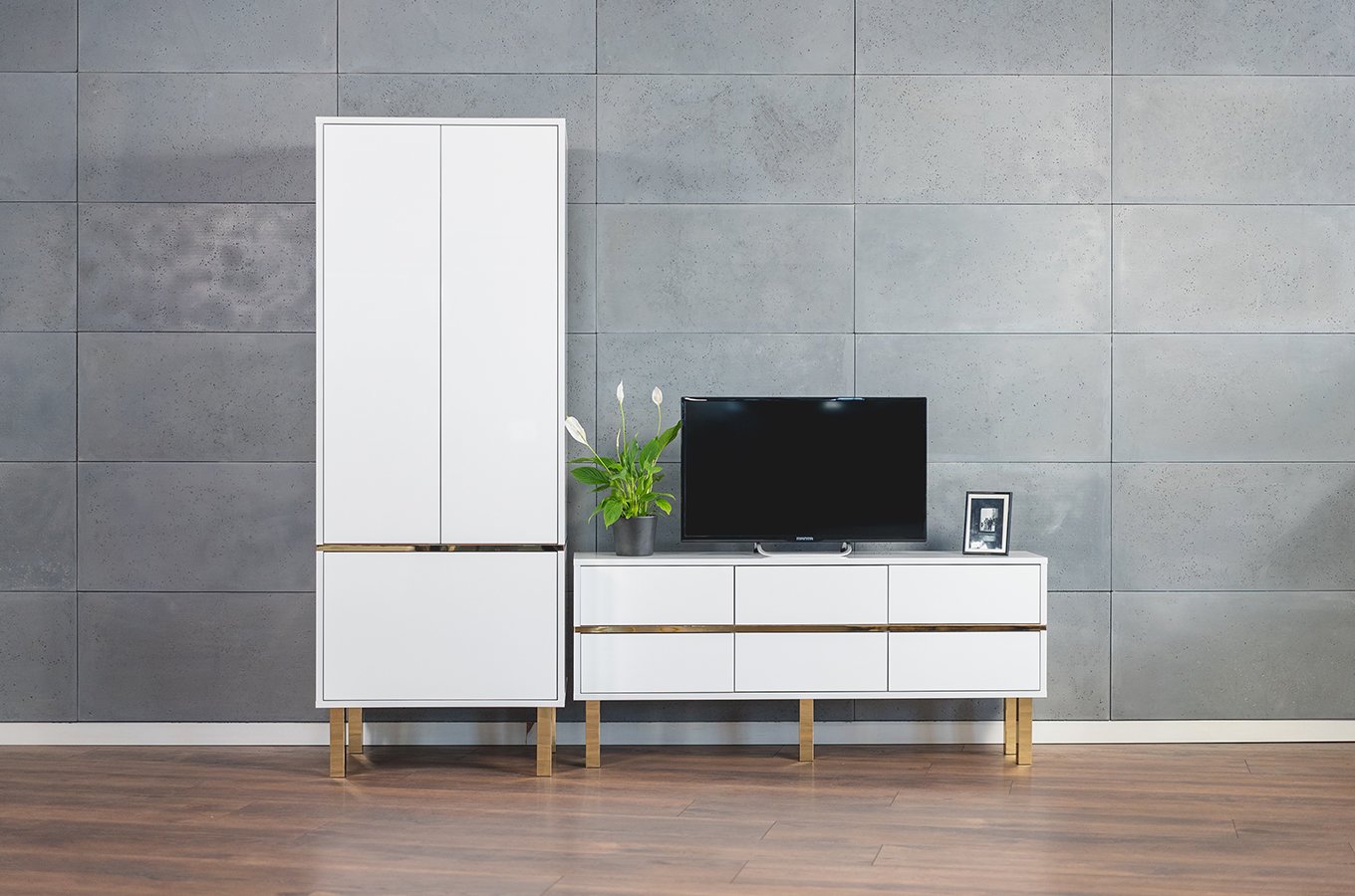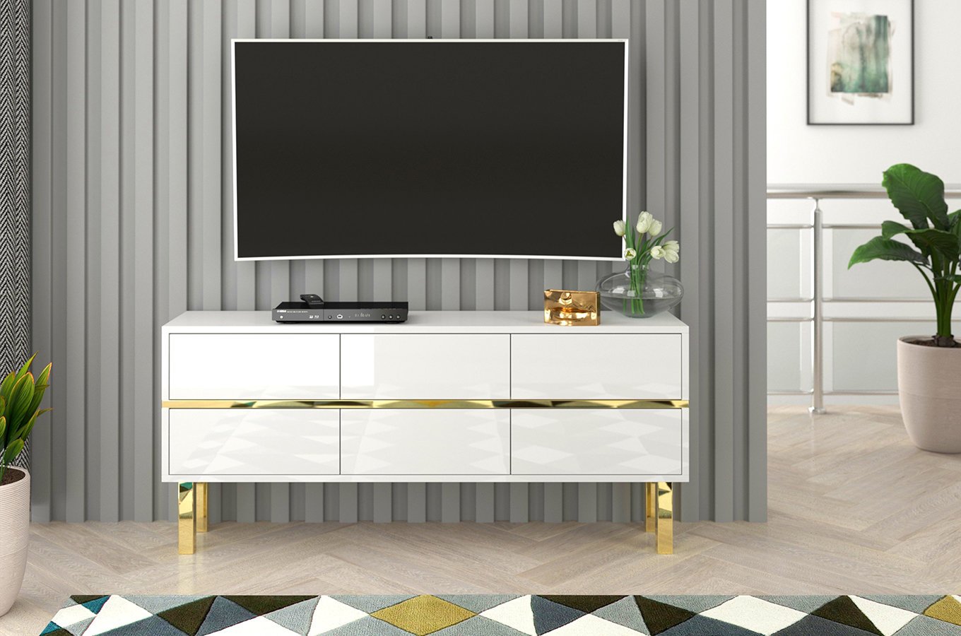 TV asztal/szekrény Mynga (magasfényű fehér) *kiárusítás